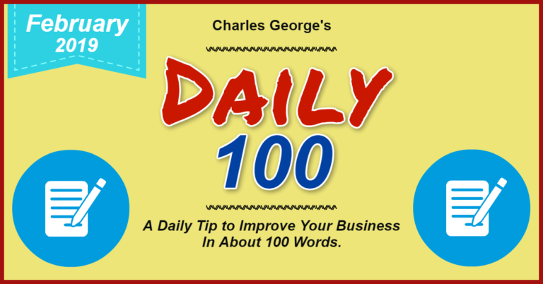 Each day, get a quick tip to improve your business in about 100 words. 2/04/2018 How aware are prospects of the problem your products and services solve? 5 Stages of Prospect Awareness. Unaware- Prospects are not aware of the problem. … [Read more...] about Daily 100-2019-February